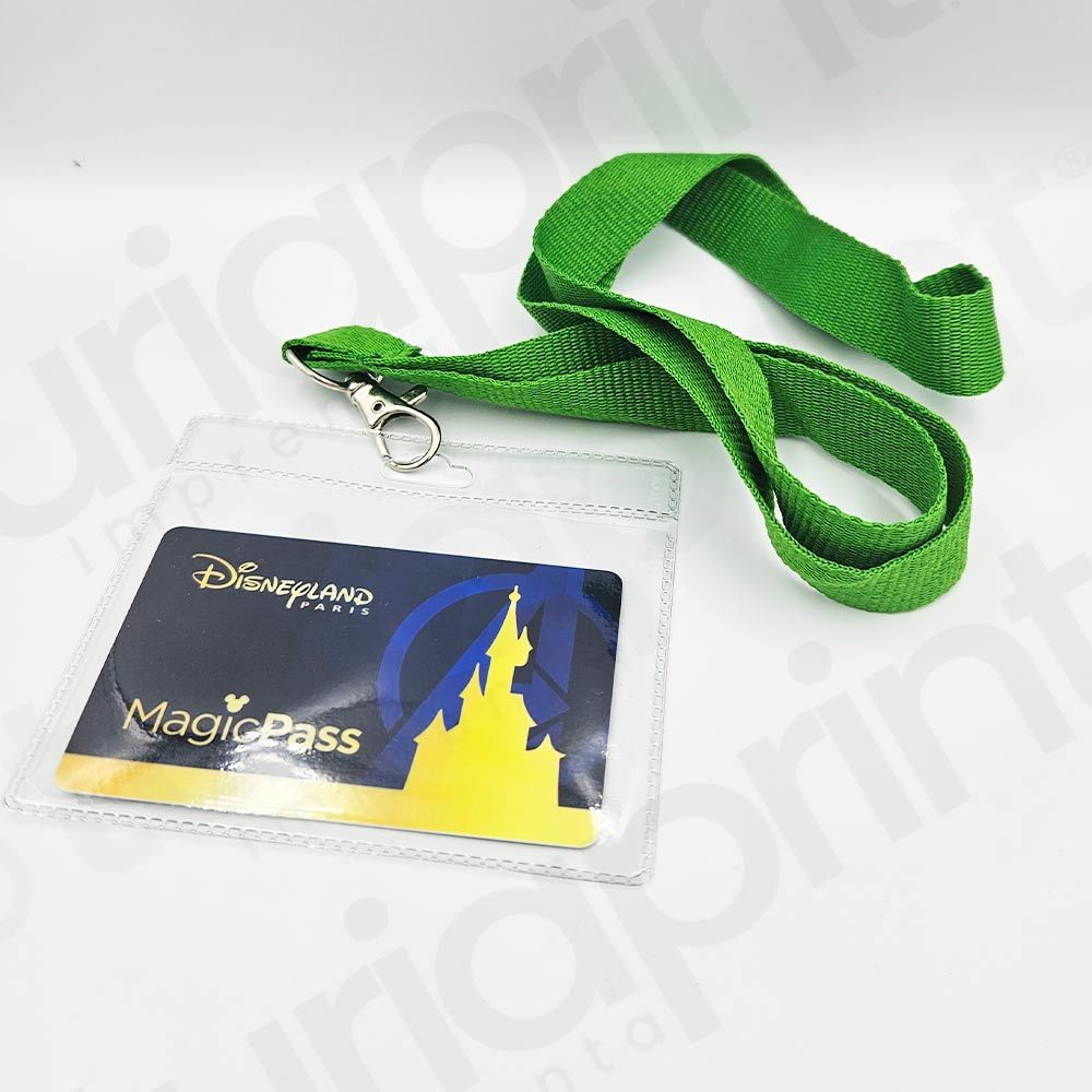 Lanyards de colores, en tejido de poliéster de 2cm de ancho y 45cm de largo con mosquetón de metal.