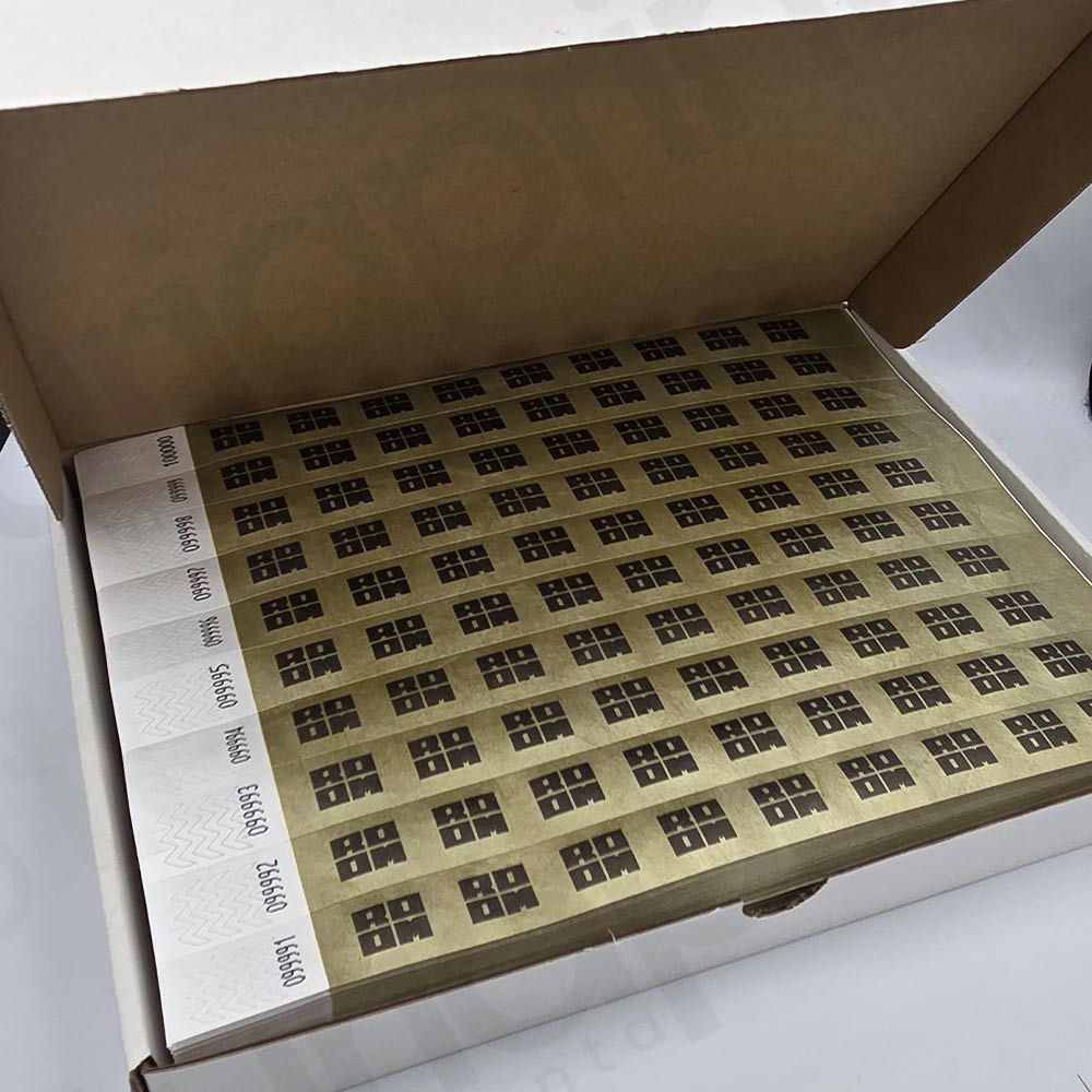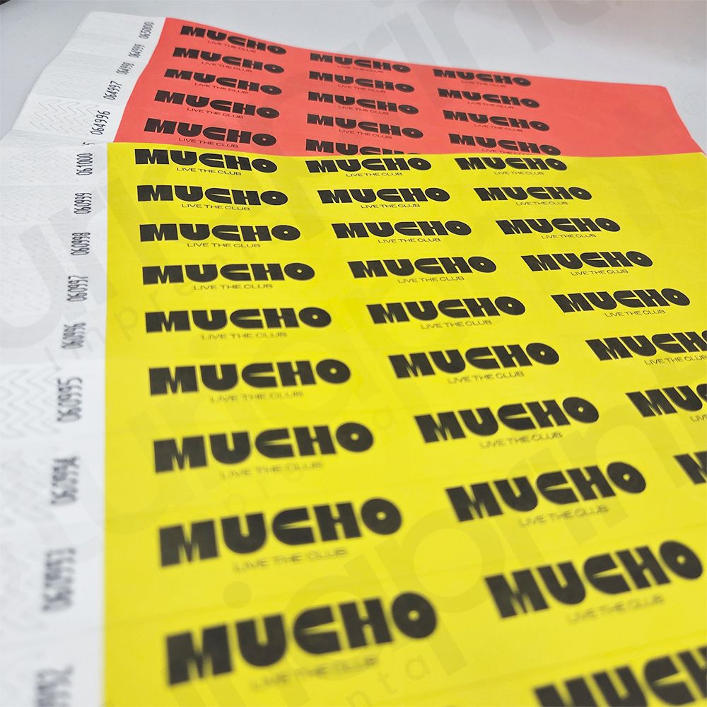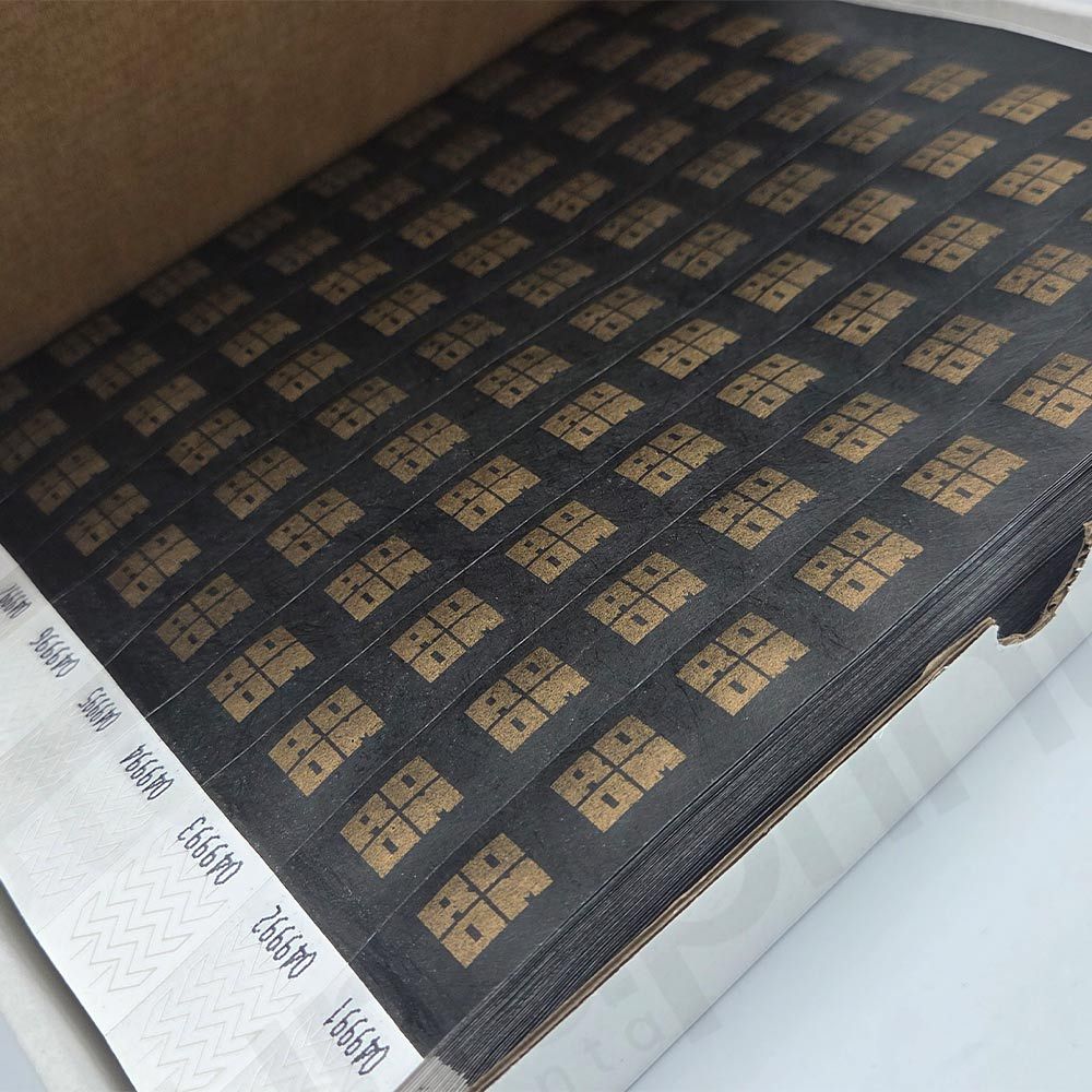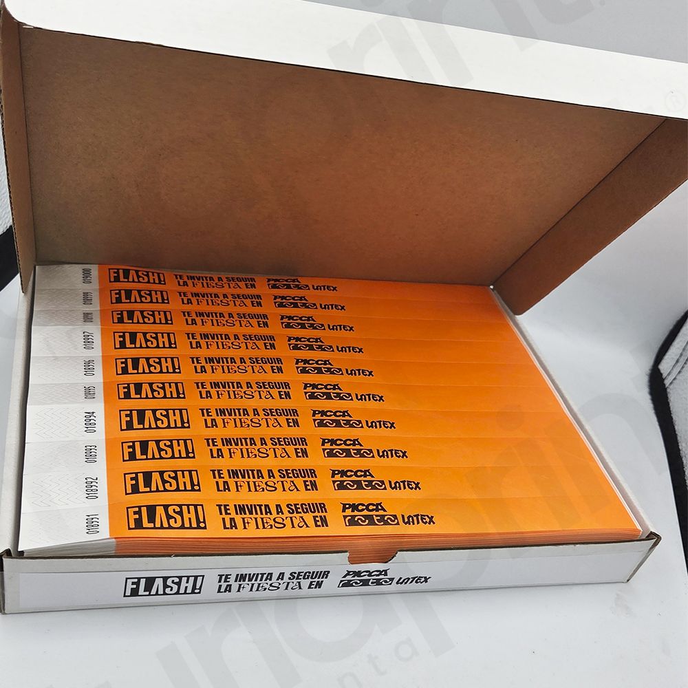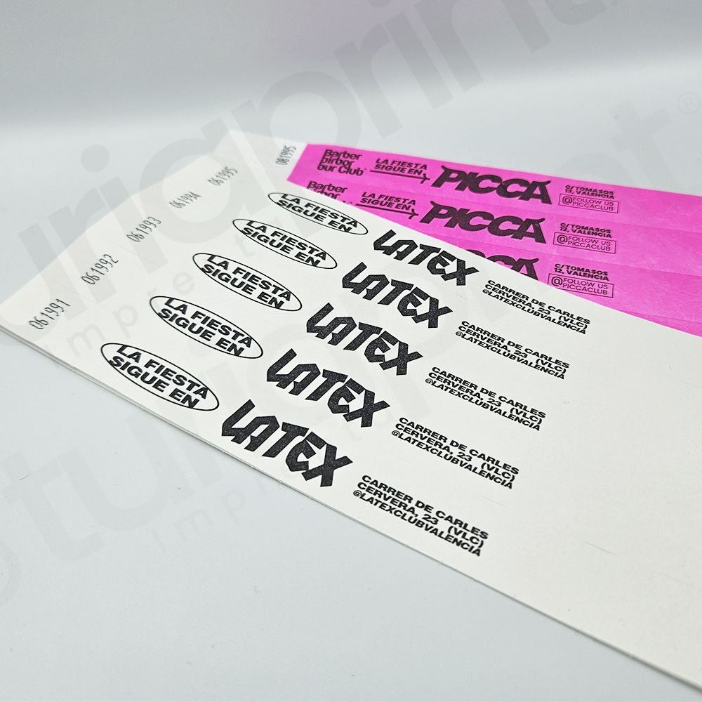 - Pulseras Tyvek impresas en tinta negra.