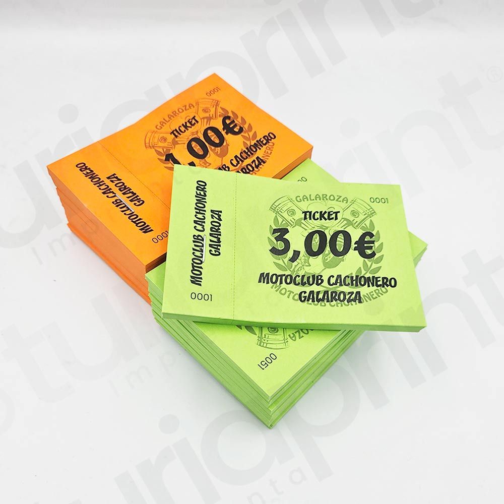 Tickets en papel de colores, perfectos para eventos, rifas, conciertos, ferias y actividades con control de acceso. Disponibles con numeración correlativa, personalización de logotipo y opciones de papel de múltiples colores. Impresión de alta calidad, resistentes y fáciles de identificar, con envío rápido para que tu evento esté siempre bajo control.