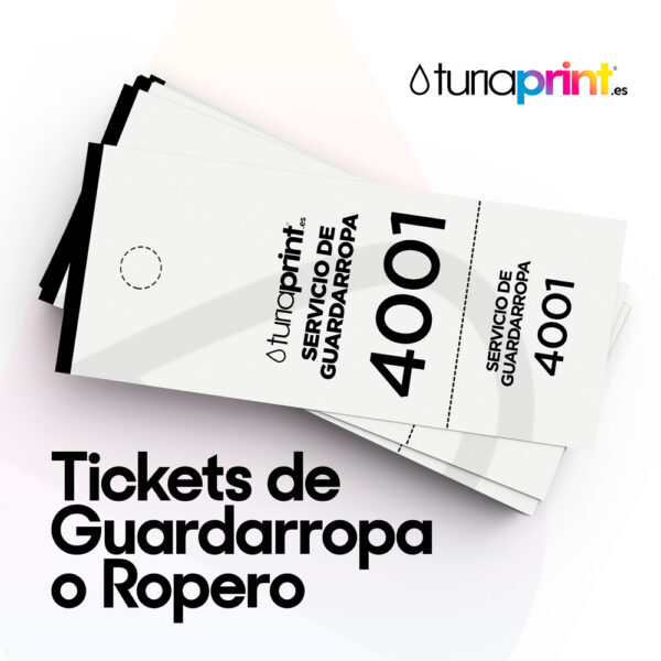 Tickets de Guardarropa o Ropero para el control de las prendas en depósito de tus clientes, numerados, con agujero para colgar en la percha y troquelados para dar resguardo al cliente.